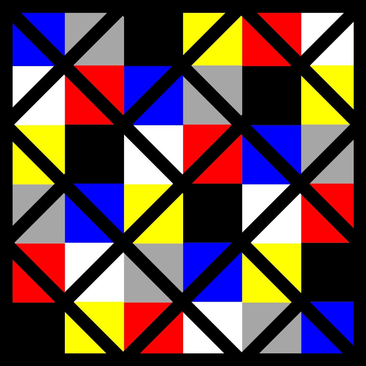 Het bestaat uit een raster van vierkanten die elk eerder zijn opgedeeld in diagonale driehoeken.