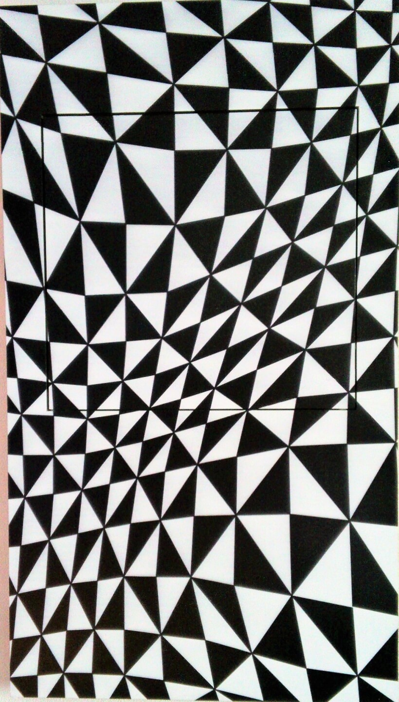 De driehoeken en de lichte vervorming zorgen voor een golvend effect.