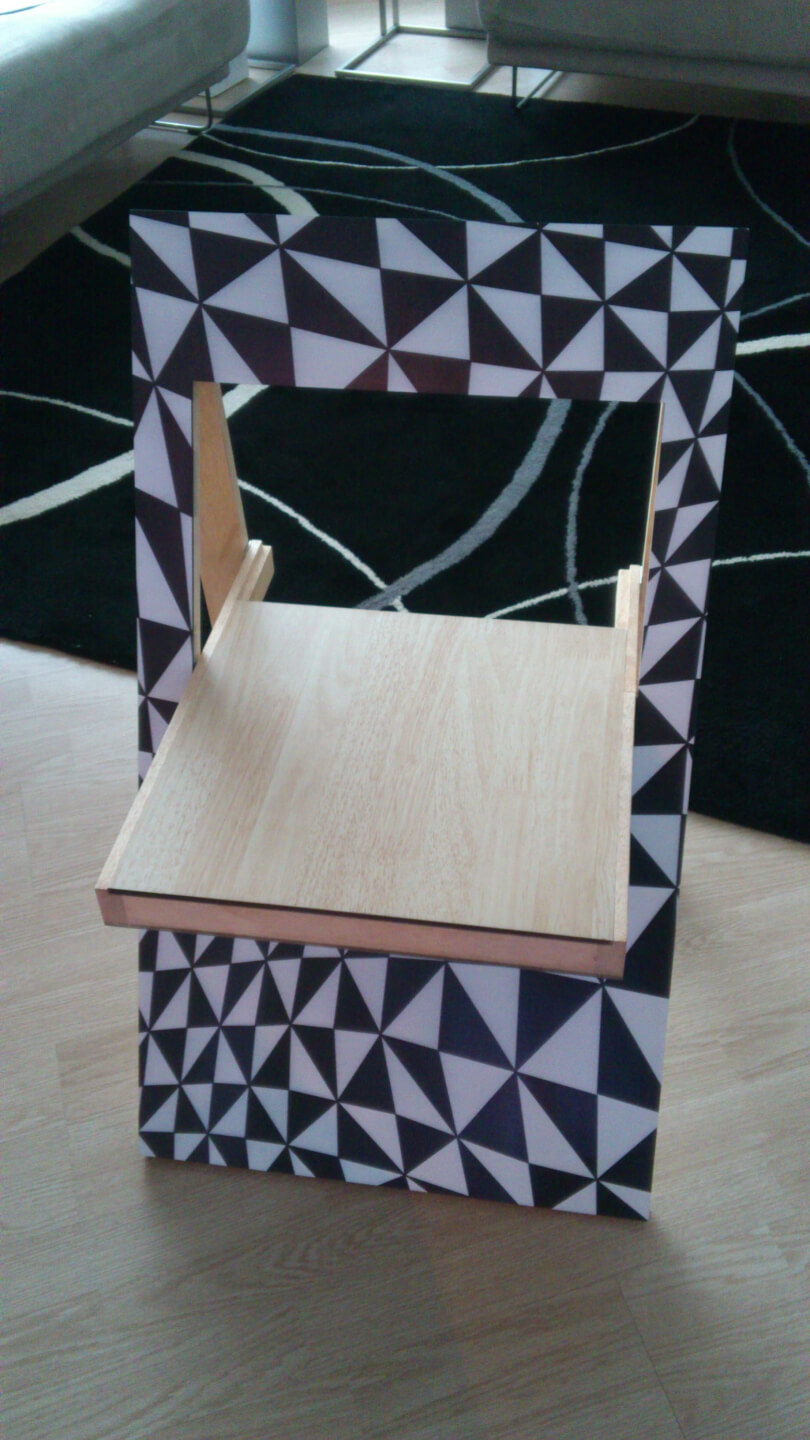 Een klapstoel met dit ontwerp functioneert niet alleen als kunstwerk aan de muur, maar behoudt ook een praktisch element.